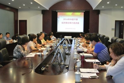 9月21日, 2016年上海健康医学院中层干部经济责任审计进点会在北苑召开。党委书记郑沈芳、校长黄钢,组织部、审计处、财务处负责人,上海琳方会计事务所方伊峰主任及其团队,接受审计的14名干部参加了会议。