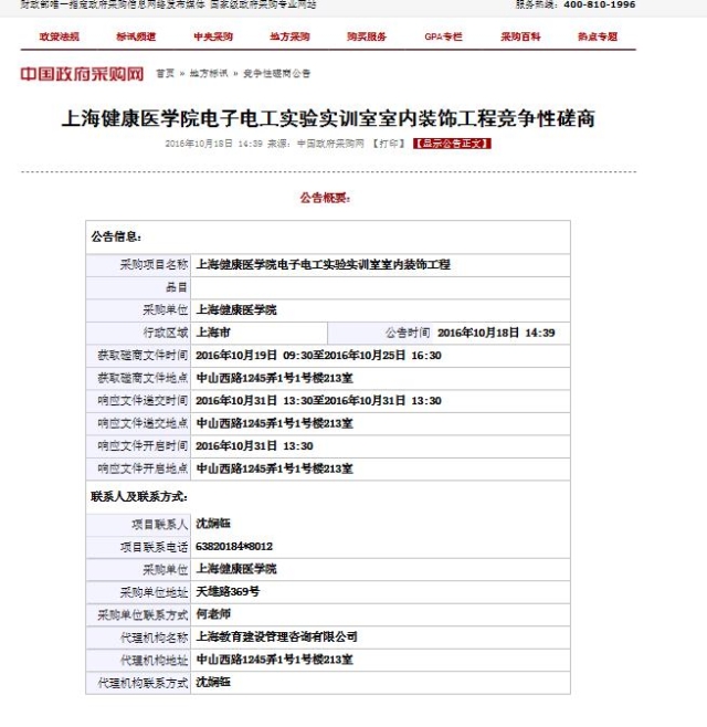 上海健康医学院电子电工实验实训室室内装饰工程竞争性磋商