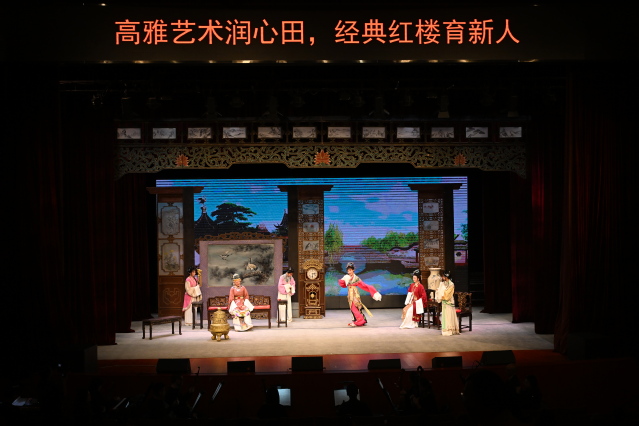 为深入学习贯彻习近平文化思想,大力推动中华优秀传统戏曲文化的校园传承与发展,进一步弘扬中华优秀传统文化、丰富校园文化生活、提升学生人文素养,2025年10月23日下午,上海越剧院携经典保留剧目——海上梨园版《红楼梦》走进上海健康医学院,在北苑德馨楼400人报告厅为上健医师生呈现了一场精彩绝伦的视听盛宴。作为学校“高雅艺术进校园”系列活动的重磅专场,本次演出由党委宣传部主办、文理教学部协办。