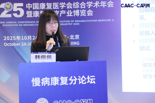 论坛学术氛围浓厚,成果丰硕。作为中国康复医学会慢病康复专委会副主任委员兼秘书长,郭琪教授带来了题为《肌少症的精准化诊断和运动处方的实践》的精彩报告,深入探讨了肌少症这一老年常见综合征的精准评估方法与个性化运动干预策略,为临床实践提供了重要指导。韩佩佩副教授作为专委会秘书及青年工作组副组长,以《间歇性禁食与肌少症》为题,系统梳理了不同间歇性禁食模式的特点,并阐释了其在改善肌少症方面的潜在作用与机制,为营养干预提供了新视角。王丽岩副教授作为专委会科普工作组副组长,分享了《认知障碍的数字评估和数字疗法》的前沿进展,展示了数字化技术在认知障碍早期识别、干预与管理中的广阔应用前景,勾勒出智慧康复的未来图景。