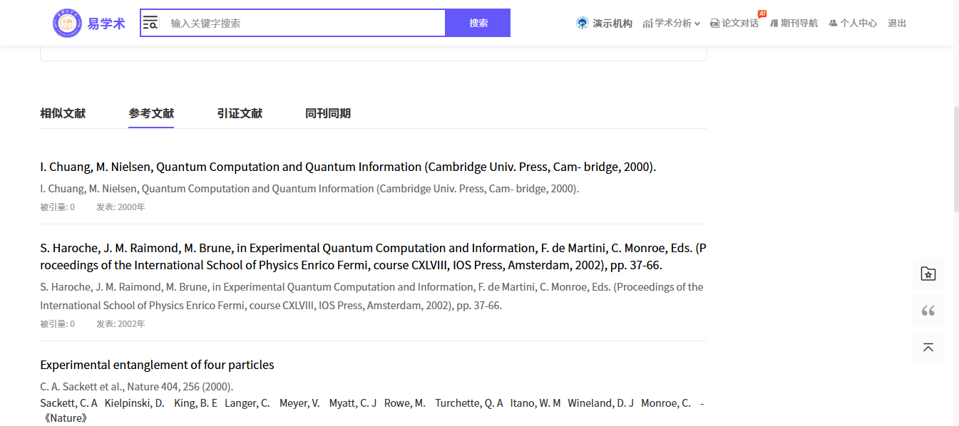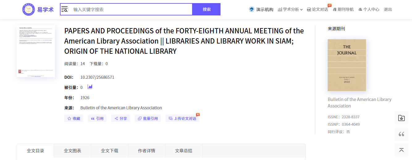 文献获取方式一用户直接点击已确认的文献链接地址可全面获取该文献全貌,包括如下信息:作者、摘要。并提供该文献全文目录、全文图表、作者详情、文章总结并提供全文下载。同时向用户提供相似文献、参考文献、引证文献、同刊同期相关信息。