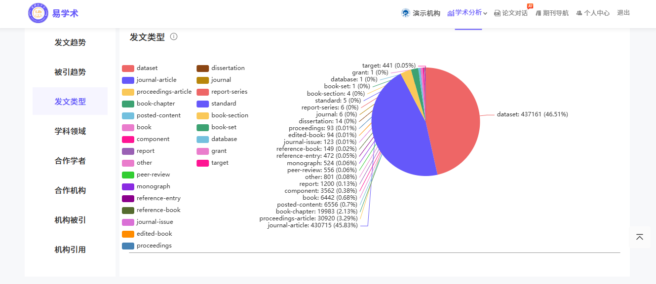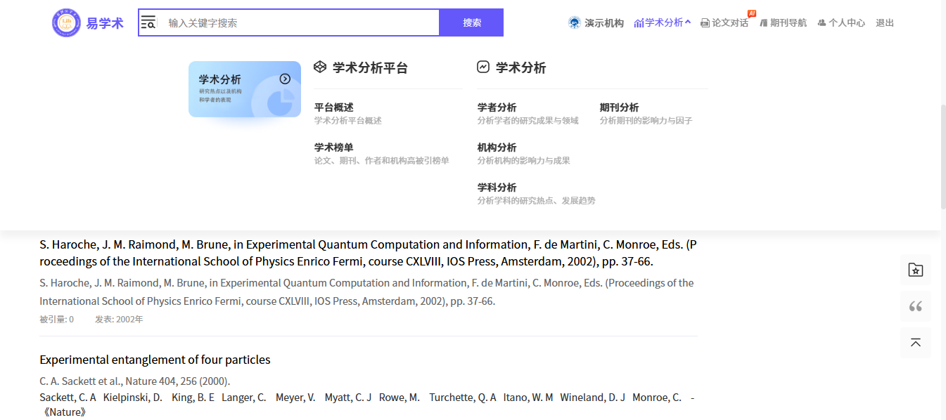EA学术资源库使用大数据分析和人工智能技术,将散落于互联网中的外文文献信息进行汇聚整合,并对海量文献数据进行深度挖掘、精准提炼、关联分析和精细加工后形成了高质量外文文献数据库和自有引文网络数据库全面涵盖科技、医学、社会科学、艺术与人文科学等全球研究成果其中ACS(美国化学学会)75种期刊覆盖74种,IEEE (电气电子工程师学会)239种期刊覆盖220种,Wiley2060种期刊覆盖1936种,SPIE(国际光学工程学会)15种期刊覆盖13种,SpringerLink 3784种期刊覆盖3516种,Wiley 2060种期刊覆盖1936种,Nature 197种期刊覆盖160种,且均可回溯至创刊年。 同时新增论文辅助阅读模块,学术分析工具,助您高效处理文献。