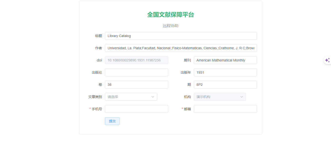 文献获取方式二若发生全文无法获取的情况,可直接点击全文下载功能提示下的”资源保障平台”填写手机号码和电子邮件地址即可快速完成文献获取。