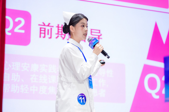 在决赛现场,团队成员紧扣我校医学与健康管理学科特色,通过6分钟的精彩汇报与5分钟的严谨答辩,系统阐释了心理健康服务从专业化向普惠化发展的路径与前景,所提出的观点兼具前瞻性与实践意义,赢得了评委的一致认可,最终荣获铜奖。