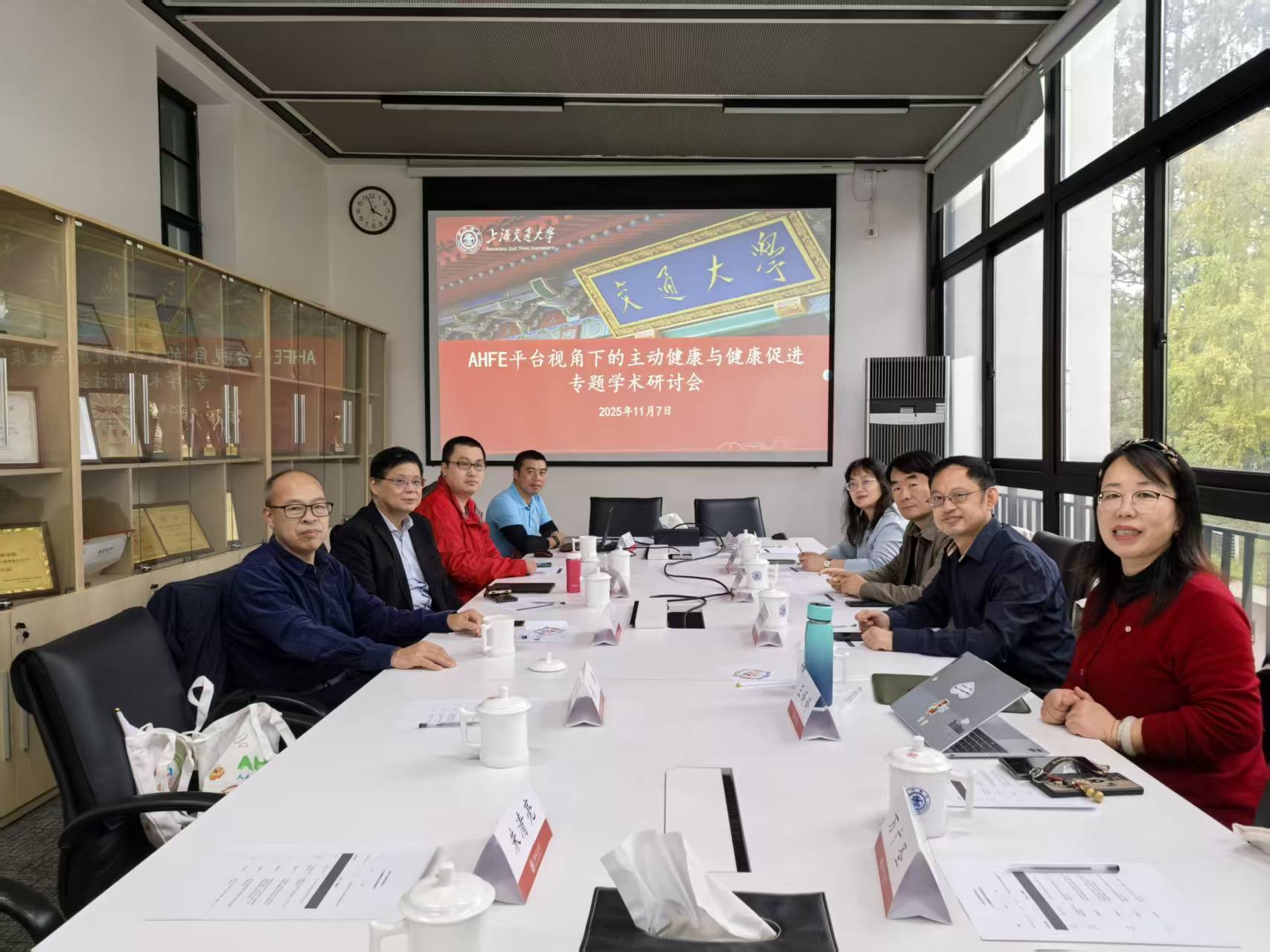 冬藏万物,智启新篇。2025年11月7日(立冬)午后,上海交通大学徐汇校区新建楼内思想火花迸发,智慧暖流涌动——以“AHFE(主动健康与健康促进协同治理平台英文缩写)平台视角下的主动健康与健康促进”为主题的学术研讨会在此举行。本次会议汇聚了来自上海健康医学院AHFE平台的万广圣教授、郑国华教授、邵晓军教授、张世翔教授、曹月柱教授等校内核心成员以及上海交通大学健康长三角研究院院长助理蒋锋教授等校外成员。大家齐聚一堂,共同探讨学校在“十五五”规划背景下,如何有效发挥平台作用,推动主动健康与健康促进领域的产教研融合与协同育人机制构建等关键议题。会议由郑国华教授主持。