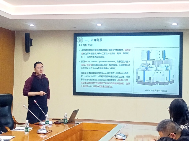 昌教授以《微波ECR等离子体设备研究进展》为主题进行学术分享,详细介绍了课题组在微波ECR等离子体设备研发及其在材料处理和改性方面的研究工作。该设备在较低工作气压条件下能够产生高密度等离子体,广泛应用于生物医学材料改性等诸多领域。此外,昌教授亦对其所属的等离子物理及应用实验室予以介绍,并积极寻求合作契机。最后,昌教授同与会人员分享了个人申请国家自然科学基金和从事学术研究的相关经验。讲座内容充实且意义深远,参会教师围绕各自关切的研究主题与昌教授进行了深入交流。