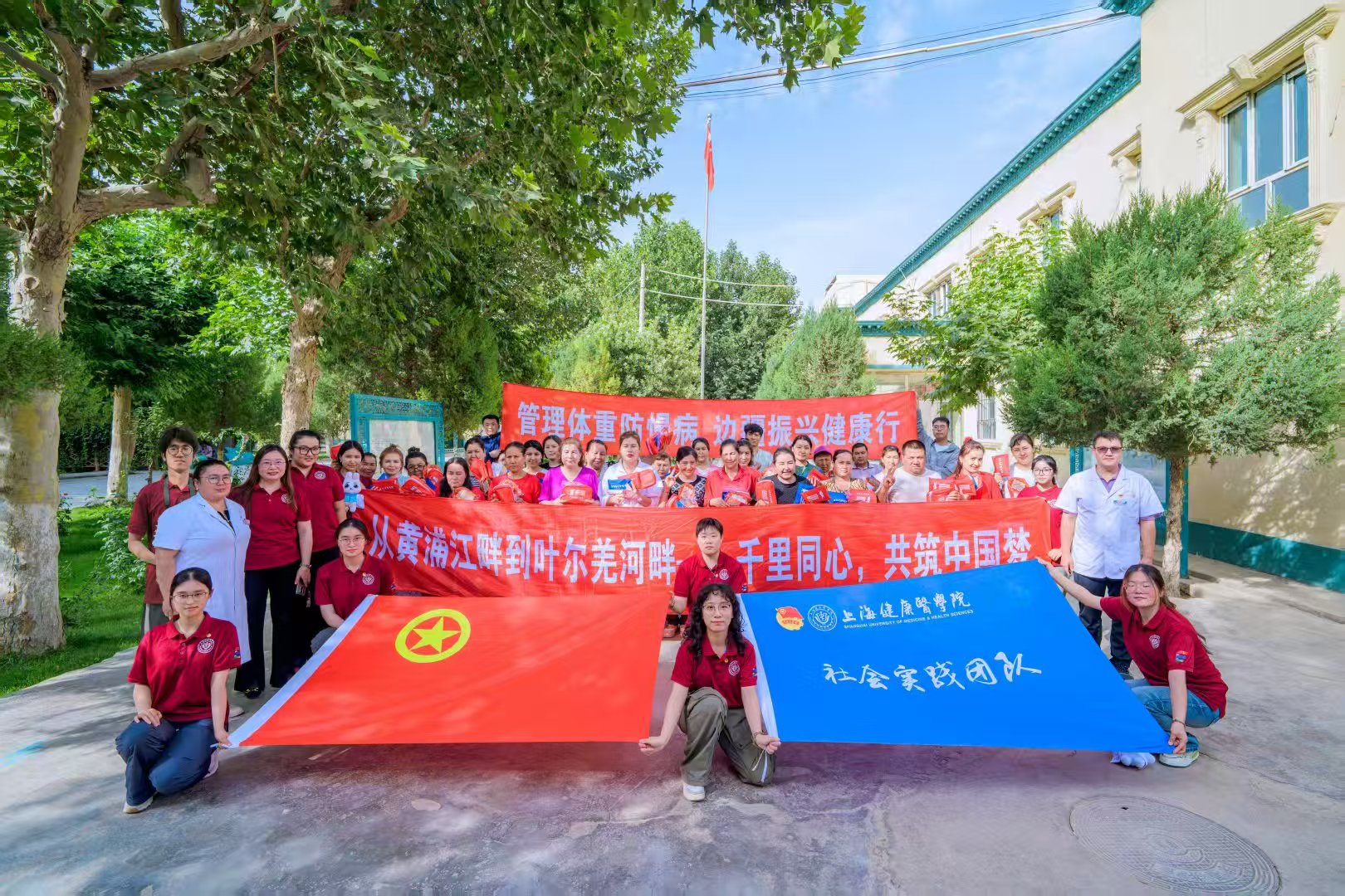 团队深入走访喀什二院、莎车县人民医院等援疆医疗单位,见证了远程会诊系统等“上海智慧”在基层医疗中的创新应用;在阿热勒乡、艾力西湖镇等地开展双语健康科普,通过急救培训、八段锦教学等活动促进民族团结;与援疆医生、当地医学生深入交流,深刻体会了“组团式”医疗援疆的显著成效。特别值得一提的是,团队中的喀什籍定向培养医学生热依拉,正是沪喀医疗协作的受益者和见证者,她毕业后将返乡服务,成为基层健康“守门人”。此次实践不仅深化了队员们对边疆医疗现状的认识,更坚定了他们服务健康中国战略的使命担当,用实际行动诠释了“中华民族一家亲”的深厚情谊。