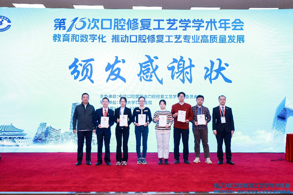 闭幕式上,组委会专家从参展的266份壁报中评选出70份优秀壁报,并颁发了感谢状。口腔医学技术专业蔡鸿鑫老师、22级口腔班学生曹雨婷(指导老师:周曼莉、董晛)以及24级口腔班学生葛佳赟(指导老师:马晓晴、林丹)三位师生的壁报荣获“优秀”。