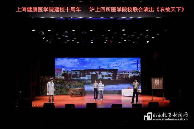 12月10日,由上海健康医学院携手复旦大学上海医学院、上海交通大学医学院、上海中医药大学联合创排的医学人文话剧《衣被天下》在上海健康医学院北苑德馨楼剧场隆重首演。作为上海健康医学院建校十周年的重磅献礼之作,这场演出以细腻的叙事、真挚的演绎,将中国医者的责任与担当、坚守与传承娓娓道来,生动展现了中国医疗卫生事业的发展脉络与医者精神的时代传承,为现场观众奉献了一堂沉浸式“医学思政大课”。