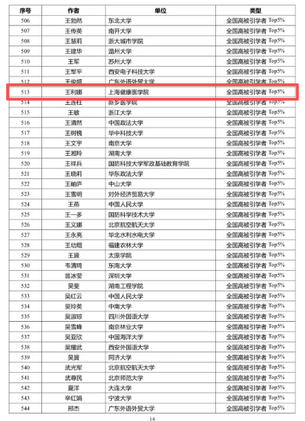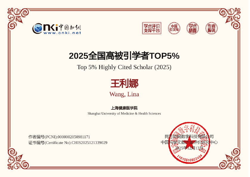 202512月,中国知网下属中国科学文献计量评价研究中心发布了“2025全国高被引学者”名单,旨在表彰各学科领域产生重要影响力的学者。我校外语教学部王利娜老师入选该名单。