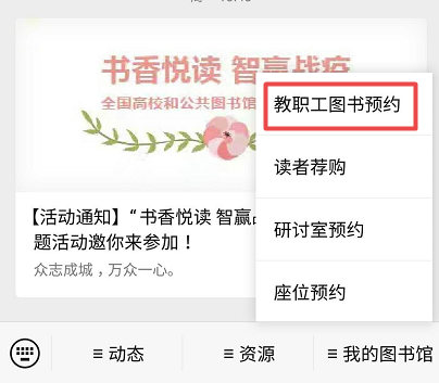因受新冠肺炎疫情影响,图书馆暂停对外开放,但停课不停学,为满足广大教职工在疫情期间的阅读需求,保障教学科研正常开展,图书馆特推出“图书预约服务”。