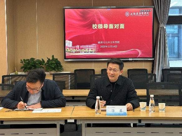 会上,汤磊副校长亲切询问学生学习生活情况。与会学生们踊跃发言,主动分享专业感悟与发展构想。他认真聆听并立足学校人才培养全局,围绕课程体系优化、职业发展指引等方面逐一回应,勉励学生尽早树立职业规划意识,主动对接行业前沿,把握公共卫生专业核心属性;同时建议学生理性规划考研与就业,提醒有深造意向的学生提前谋划、科学选校。