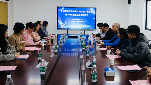 为深化产教融合,促进卫生健康人才培养与产业发展需求紧密对接,12月31日,上海健康医学院康复学院党总支、医疗器械学院党总支联合举办深化校企合作座谈会暨2026届就业工作推进会。校关工委副主任江孝渔、合作企业代表中进宏康医疗科技(上海)有限公司总经理丁庆飞、校学工部副部长罗瑾琰应邀出席,共同探讨构建贯穿学生成长全过程的职业发展支持体系,为学生的职业航程注入更专业的指导和更强劲的动力。会议由康复学院党总支副书记(挂职)蒋瑛英主持。