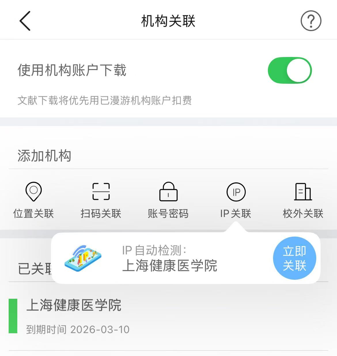 第二,需要将全球学术快报APP与我校进行机构关联,推荐关联方式如下: