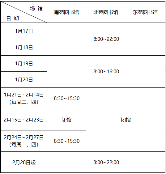 1月19日至2月28日期间,送书上门和委托图书暂停服务,阅览室座位、研讨室、报告厅(含西文室)预约暂停。