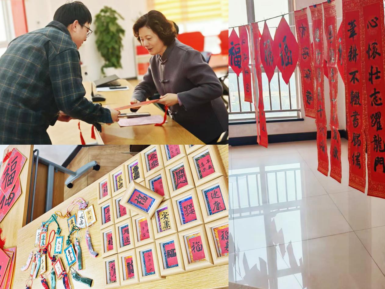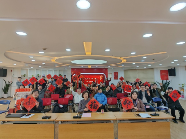 会议期间,校教工书画协会会长陈金杜笔走龙蛇,一纸“福”字,把墨香与祝福同时送到每位老师手心:愿新的一年,笔有春风,心有朝阳,工作与生活并肩生花。