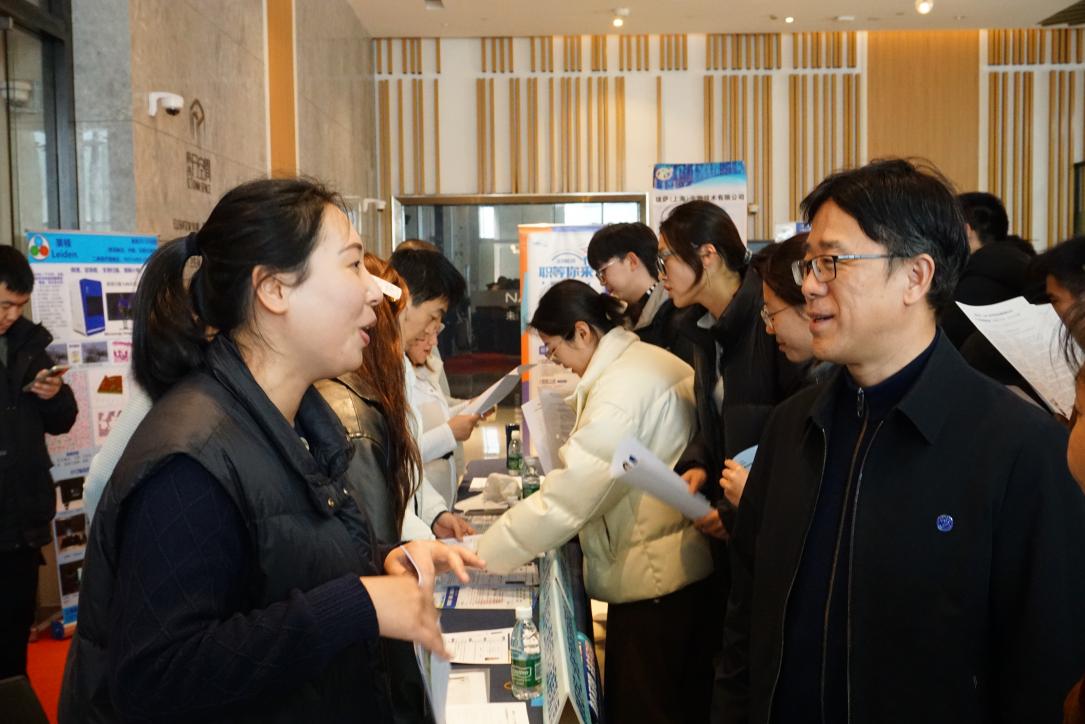 校党委副书记、副校长王庆华带队来到招聘会现场,深入企业展位了解用人需求与行业动态,与用人单位代表深入交流,积极推介我校优秀毕业生。