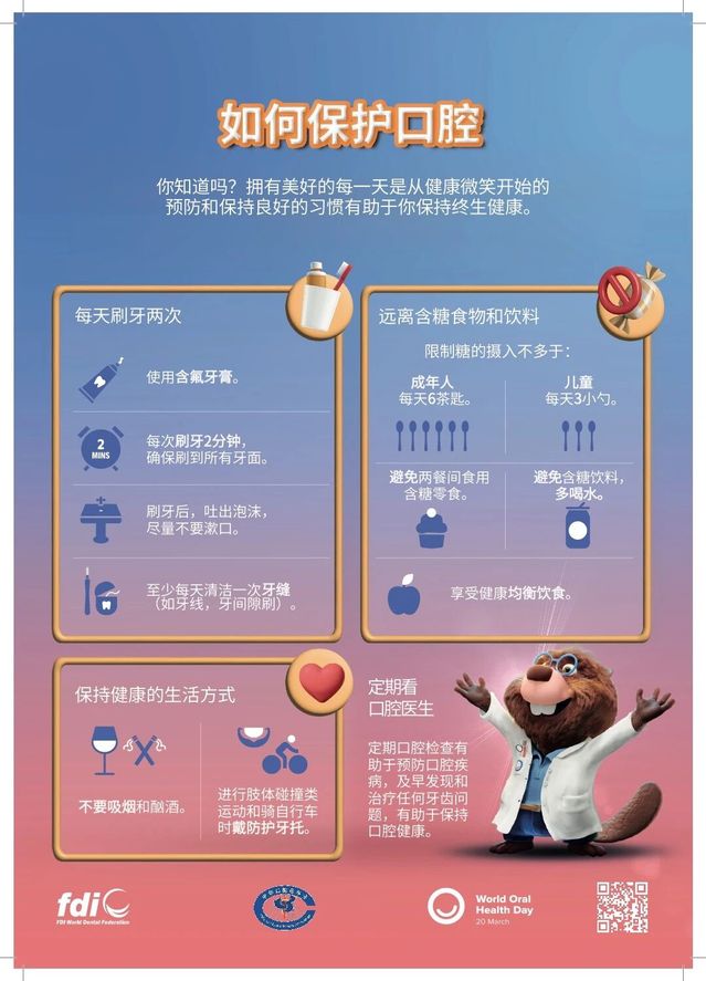 近期,国家卫生健康委等13部门联合印发了《儿童青少年“五健”促进行动计划(2026—2030年)》,明确将口腔健康与体重、视力、心理、骨骼健康并列为儿童青少年健康促进的五大重点领域。从国际共识到国家行动,口腔健康的基础性地位日益凸显。值此世界口腔健康日之际,让我们共同关注口腔科普,以科学理念指导日常照护,为全生命周期健康打下坚实基础。