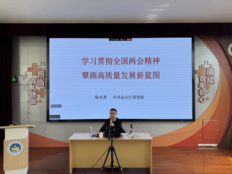 此次学习特邀金山区委党校教育培训科科长、上海市委党校特聘研究员陈光普副教授作《学习贯彻全国两会精神 擘画高质量发展新蓝图》专题辅导报告。陈光普从2025年工作回顾到“十四五”时期经济社会发展成就,从“十五五”时期主要目标和重大任务到2026年政府工作十大任务,全面系统解读了政府工作报告的核心要义。陈老师层层剖析,深刻阐述了“十五五”开局之年国家发展总体要求和政策取向,这对医药卫生类职业院校而言,既是发展机遇,也是责任担当,学校需紧扣行业需求,深化产教融合,在服务“健康中国”战略中,培养更多适应基层医疗、公共卫生服务的高素质人才。