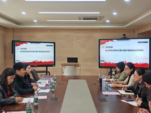 在“专业赋能”环节,保卫部党支部书记慈兴强以“党建引领安全,实战守护平安”为主线作消防安全专题培训。他立足高校安全工作实际,将党建工作中“人民至上、生命至上”的核心理念贯穿始终,通过“案例警示+政策解读+技能传授”的三维教学模式,实现了党建工作与消防业务的深度融合。