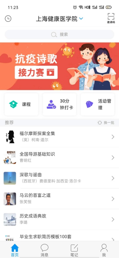 抗疫诗歌接力赛,学生参与活动后,可选择表达与抗疫相关情景的诗歌,或者自创诗歌内容等,不限诗歌体裁,可以选择朗诵或者歌唱并拍摄视频。在活动区发表评论上传自己的作品。