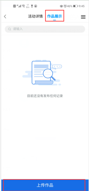 选择“作品展示”,点击“上传作品”,填写相关信息,上传附件。