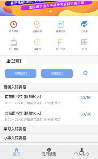 一、疫情防控期间,图书馆实行预约限流入馆。限流期间,全部采用图书馆座位预约系统进行图书馆座位(入馆资格)预约。如预约满员,将不再接受读者入馆;如有读者签退离馆,系统将释放新入馆资格,其他读者方可预约入馆。