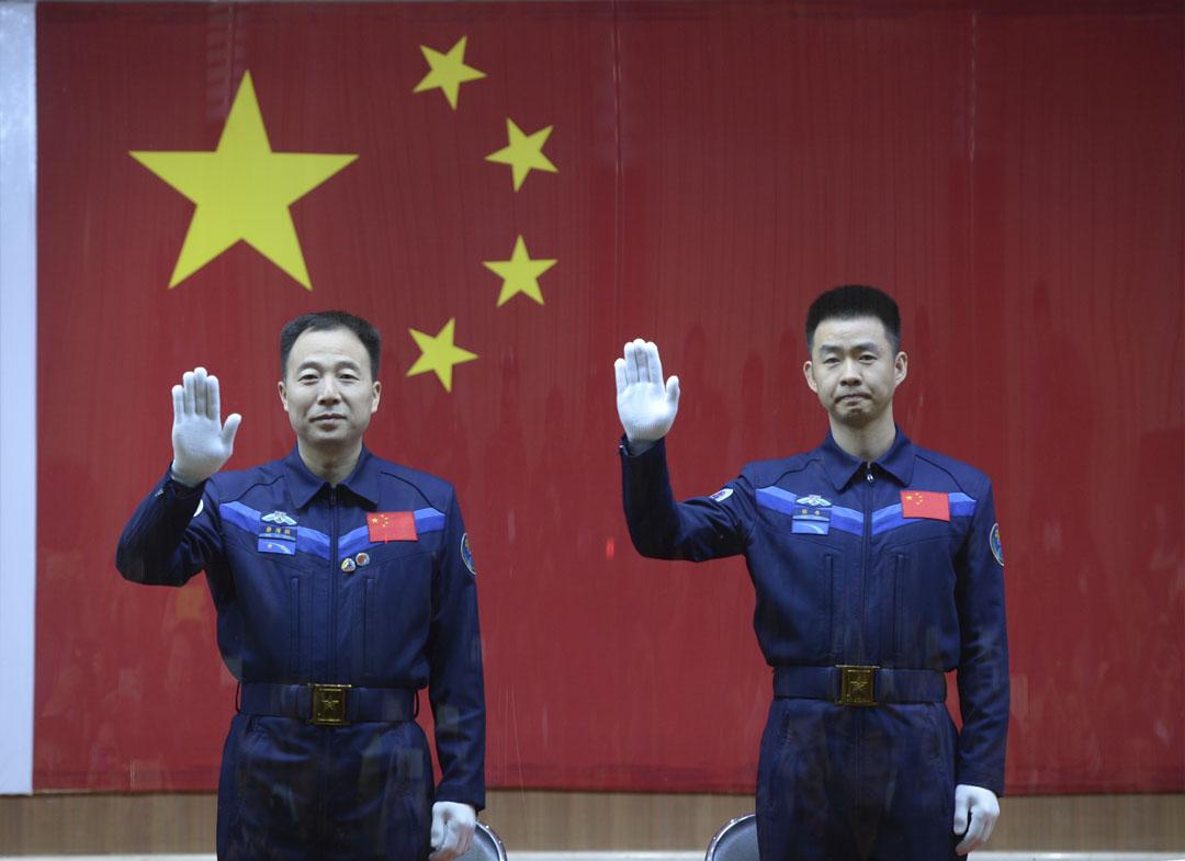 神舟十一号航天员飞行乘组景海鹏、陈冬出征。