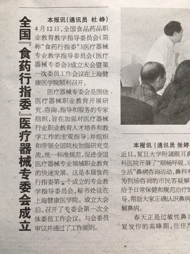 【大众卫生报】全国食药行指委医疗器械专委会成立