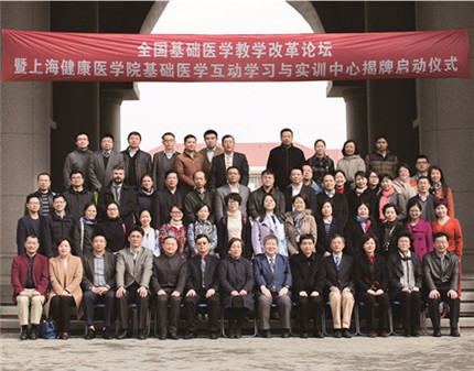 3月31日,由上海市医学会医学教育专科分会主办,我校校办、教务处、基础医学院联合承办的全国基础医学教学改革论坛暨我校基础医学互动学习与实训中心(简称“互动学习与实训中心”)揭牌启用仪式举行。我校全体校领导、中国解剖学会理事长第三军医大学张绍祥、中国解剖学会副理事长第四军医大学李云庆、中国解剖学会副理事长上海交通大学医学院丁文龙、华中科技大学湖北医药学院副校长李和,以及来自全国20多所医学院校的100多位领导、专家、老师和学生出席。
