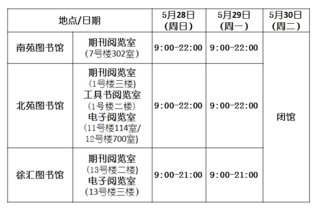 图书馆开馆时间安排如下: