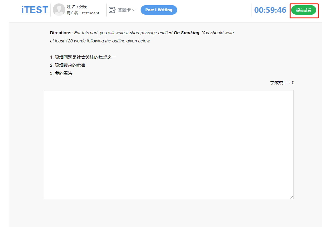 第十步:提交试卷。答题完毕后请考生务必点击【提交试卷】按钮,如若倒计时结束,系统会自动收卷。
