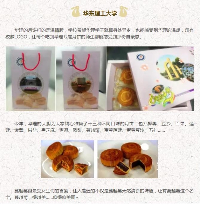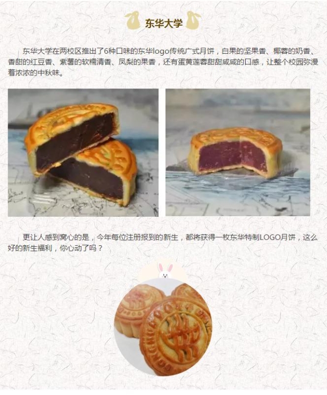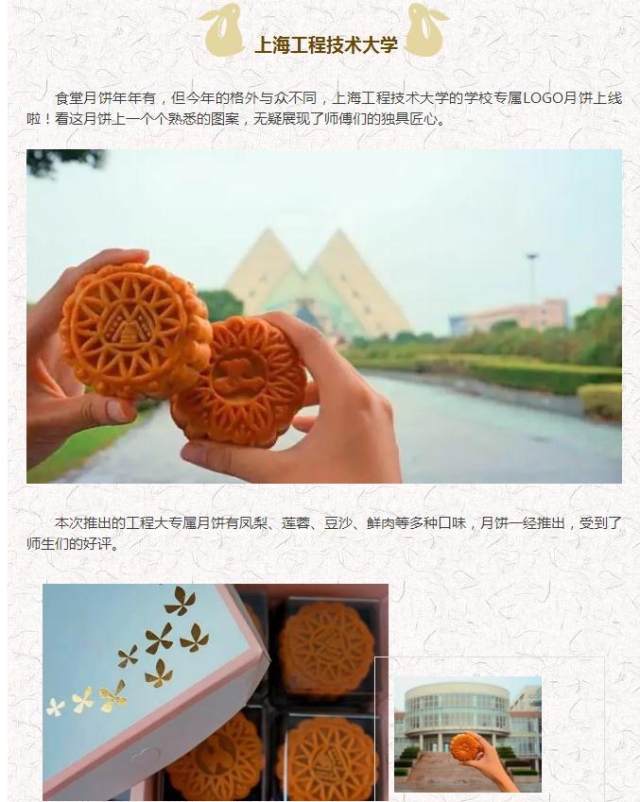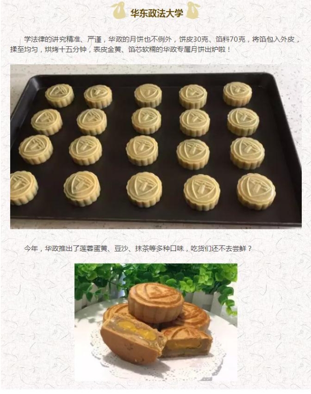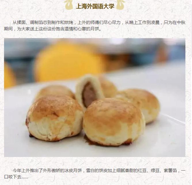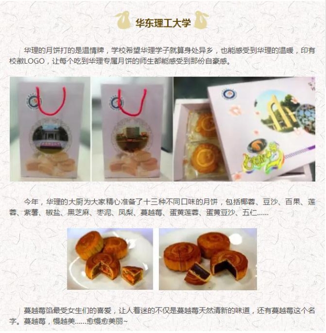 各大高校也赶上了这阵“网红”风,大厨们结合本校特色,紧跟潮流的脚步,推出了一款款既精致又美味的月饼,一起来“眼馋”一下吧。