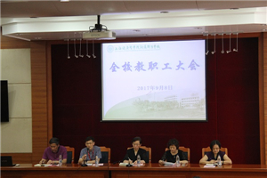 2017年9月8日下午13:30,上海健康医学院附属卫生学校第一次教职工大会在徐汇校区报告厅顺利召开。上海健康医学院党委书记郑沈芳、副校长唐红梅;附属卫校常务副校长汤磊、副校长、党总支书记朱文娟、副校长刘宏正以及附属卫校全体教职工出席了会议。