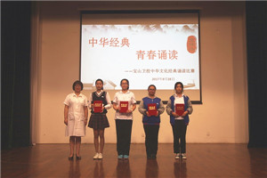 为大力弘扬中华民族文化,让我校师生领略中华文字博大精深的艺术魅力,感受中华民族的内在精神和先进文化,在潜移默化中提高全校师生的人文道德素养,同时结合学校工会“读书月”活动和“推普周”方案,我校于9月28日下午在大礼堂举办了“中华经典青春诵读”比赛活动。 活动由学生四个班级和教职工两个工会小组推选的12组选手参加,师生通过《黄山松》、《与历史亲近的时刻》、《我骄傲,我是中国人》、《我爱你,中国》等节目在全校师生面前进行了展示,一颗颗纯真火热的心,一句句抑扬顿挫的诗句,展示着祖国优秀文化的无穷魅力,抒发着师生们对中国传统文化的热爱,整个学校都洋溢在一片浓厚的文化氛围中,为校园生活增添了更多激情。 本次活动不但弘扬了祖国优秀的传统文化,营造“书香校园”的氛围,促进师生积淀文化底蕴。同时也让师生们接受了一次爱国主义教育,增强了民族自信心和自豪感。 | ||