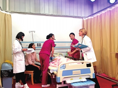 决赛现场,来自美国、英国、加拿大、澳大利亚、芬兰、丹麦等国家和地区,以及国内11所医院、6所学校的各路选手,分护士、护生和国际3个组别展开激烈角逐。