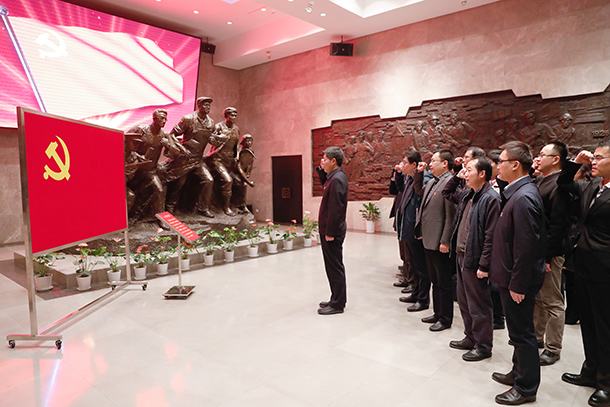 左侧的党旗前亦是盛况空前。短短10分钟里,就有三批来自不同单位的团体参观者在此举起右拳宣誓:“我志愿加入中国共产党,拥护党的纲领,遵守党的章程,履行党员义务,执行党的决定,严守党的纪律,保守党的秘密,对党忠诚,积极工作,为共产主义奋斗终身,随时准备为党和人民牺牲一切,永不叛党。”