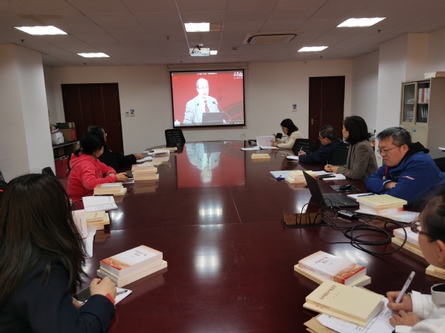 接下来的“名人讲党课”环节,全体党员认真观看金一南教授“不忘初心,方得始终——中国共产党长盛不衰的生命力源泉”的演讲。金教授用40多分钟的时间精彩地阐述了我们党长盛不衰的理由,演讲中不断响起阵阵掌声。