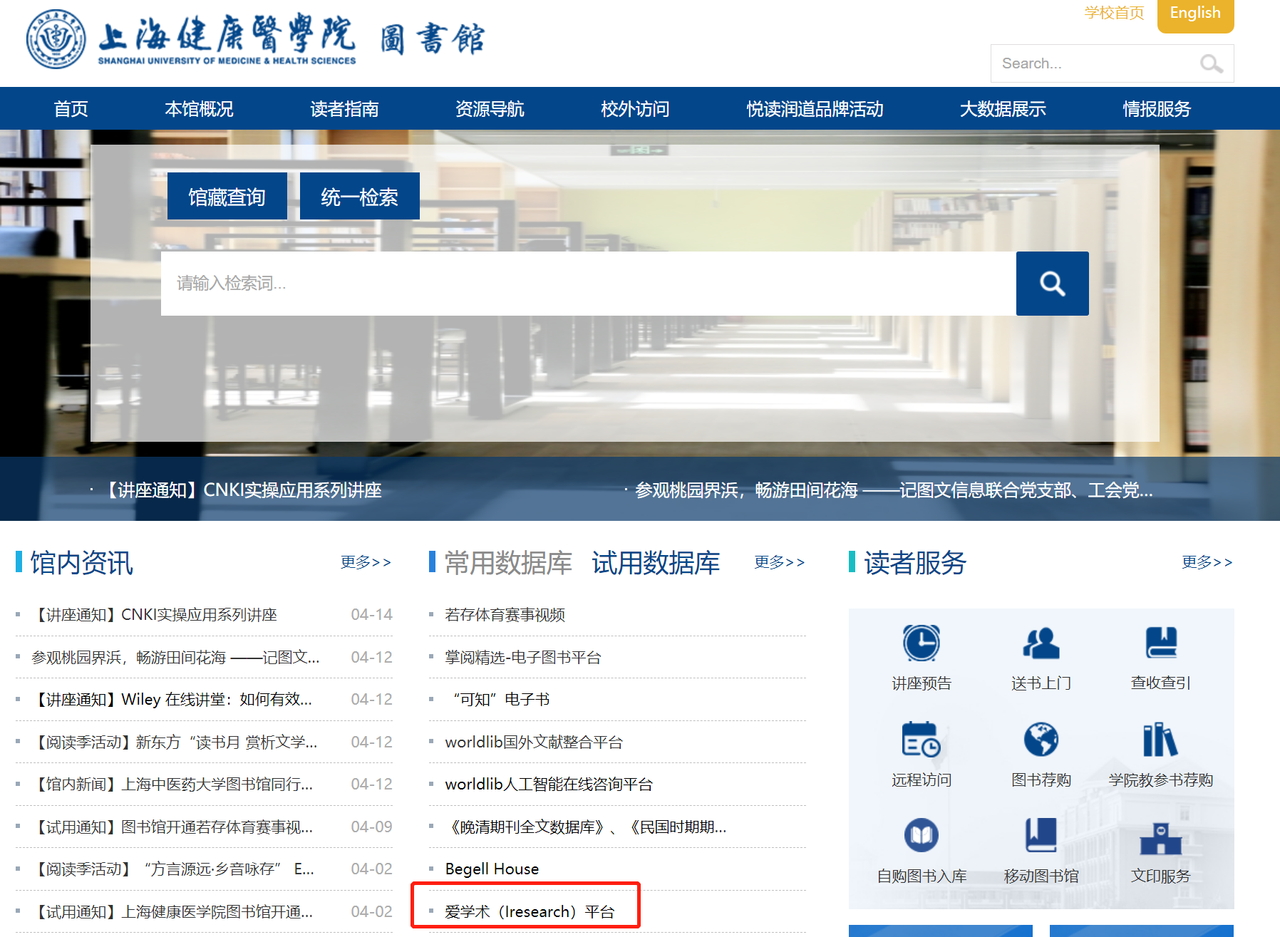 访问方式:图书馆主页——试用数据库——爱学术(Iresearch)平台
