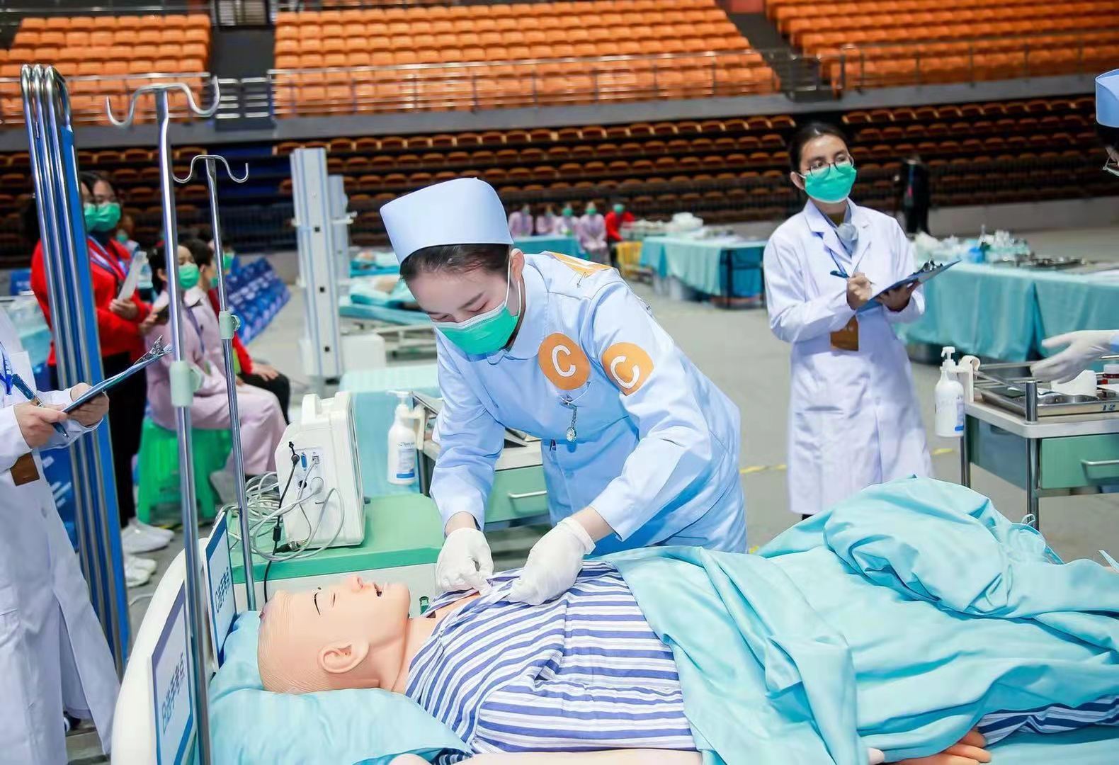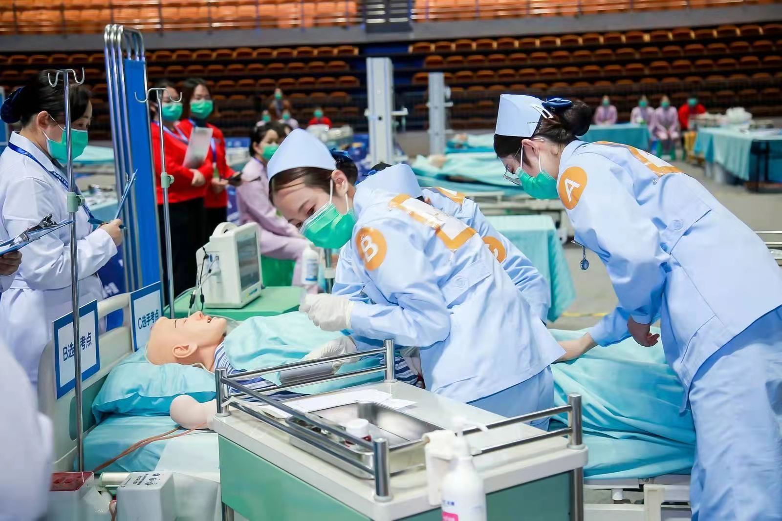 中国大学生医学技术技能大赛,是独具中国特色的高端医学教育赛事,自2010年以来,已走过十年风雨,堪称医学生的“奥林匹克”。大赛于今年首次增设护理类专业赛道,大赛围绕“尚德精术培育卓越人才中西并重共筑健康中国”的主题,采用“多站点、多赛道、递进式”的考核方式,赛项设置贯穿“生命全周期,健康全过程”,考核范围涵盖基础护理学、急危重症护理学、内科护理学、外科护理学、妇产科护理学、儿科护理学、健康评估、老年护理学、社区护理学等护理相关知识与技能,案例完全贴近临床实践,以临床案例和场景为轴,重点考核选手们专业知识、护理技能、临床思维、团队协作、健康教育、临场应变、人文关怀等方面的能力与素养,是一次综合实力的全面考核,也是对我院教学质量一次很好的反馈,真正达到了“以赛促学,以赛促教,以赛促改”的本科教学理念。