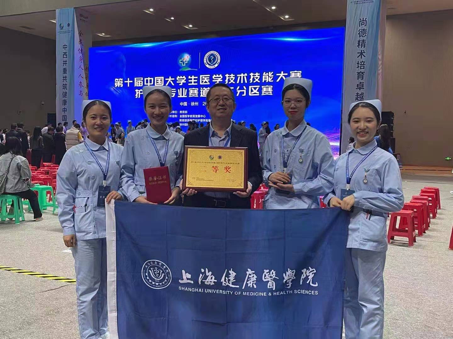 4月16-18日,由教育部主办的第十届中国大学生医学技术技能大赛护理学赛道华东分区赛在徐州医科大学举办,共有来自上海市、浙江省、江苏省、山东省、安徽省、江西省、福建省等地的62所院校参赛。我校护理与健康管理学院李莹、李梦伟、段若男、张舒朗同学组成的参赛队,以扎实的基本功和出色的临场发挥,在华东赛区62只高校参赛队伍中脱颖而出,荣获二等奖。