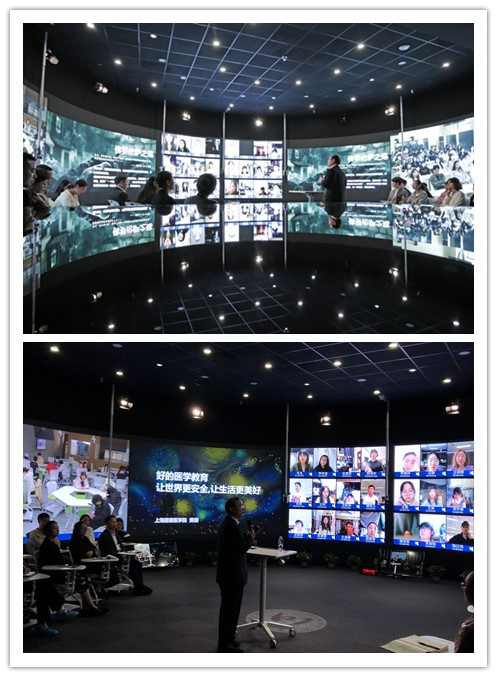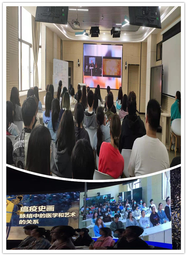4月21日下午,应四川音乐学院邀请,在川音全景教室举办了《名画中的瘟疫史》主题为"瘟疫史画脉胳中的医学与艺术的关系"见面课。此次见面课采用了中国首次“全景教室规模型上屏LIVE教学+互动教室+全网直播三重叠加模式”,是在校企合作的基础上,继3月在上海之后,又一次成功实施跨地区跨校的线上线下互动教学,课程主讲人黄钢教授、四川音乐学院以及上海健康医学院实现跨地区跨校的即时在线互动。我校70余名师生在南苑沉浸式直播互动教室参加了此次见面课,这是我校慕课建设经验和成果首次辐射中西部高校。