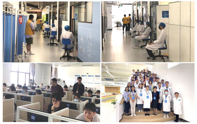 为做好水平测试相关工作,我院共遴选48名考官、招募了34名医学生志愿者以及临床医学院全体教师共同参与工作。考官均从上海市第六人民医院(临港院区)、附属周浦医院、附属嘉定区中心医院、附属浦东新区人民医院遴选。考前精心组织考官培训,提前做好耗材物品准备工作,所有考务人员、技术人员、考官、SP、保障人员等,严格按照疫情防控落实各项防疫措施。通过提前的模拟测试,开考前考务动员会议,强调考风考纪,并与考官、考务工作人员和所有标准化病人签订了考试保密协议。从考试流程设计、考场分布、考官培训到SP培训等各项考务工作,均严格按照国家医学考试中心的要求进行,确保了考核工作公正、公平、规范、科学、有序。考试期间,考场秩序井然,考官严肃认真,考务人员细心周到,各环节考试圆满完成。