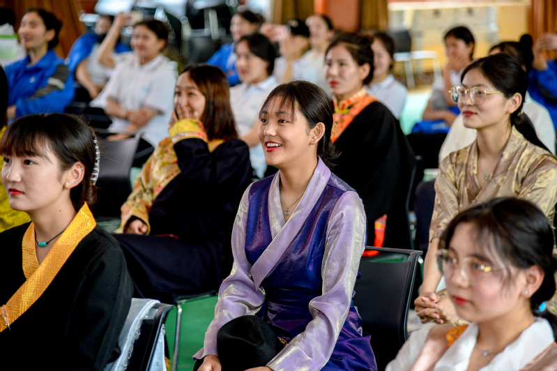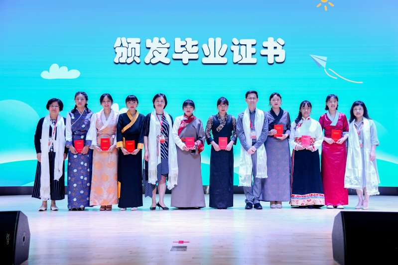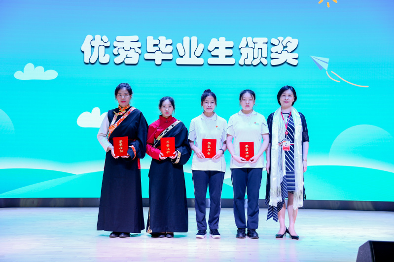 毕业典礼在庄严的国歌声中隆重拉开帷幕。毕业生们用藏族特有的礼仪,向辛勤付出的领导及老师敬献圣洁的哈达,表达了她们真诚的祝福和感激之情。