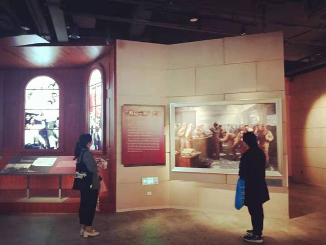 随后,大家怀揣着对革命先烈们尊敬的心情徐徐走进上海解放纪念馆。纪念馆内以实施“钳击吴淞、解放上海”的战役决策为陈列主线,重点展示上海战役宝山战区解放军将国民党守军主力吸引到郊区并将其歼灭,从而保全上海市区的主要史迹。展馆由序厅、主展厅和大型多媒体主题情景剧场组成。序厅由解放军钳形攻势、冲锋前进的装置艺术场景,主题雕塑和功勋柱三大艺术形象组成,寓意解放军前仆后继、浴血奋战,取得上海战役的伟大胜利,广大人民将永远铭记这一历史。主展厅以时间为脉络,通过“运筹帷幄”“军政全胜”和“城市新生”三部分,运用丰富的具有历史意义的照片,以及很多见证历史的勋章、先烈们的遗物,还有战斗中曾经使用过的手枪、反坦克炮、重机枪等,还有用声光电先进技术制作的动态,再现战斗场面的场景复原,多媒体幻影成像和影视短片,国民党军防御工事碉堡及深水壕沟的复原场景,以及描绘解放军指战员英勇形象的油画、雕塑等艺术作品,完整讲述了72年前的5月12日至27日在这片土地上发生的历史全过程,重现了当年人民解放军广大指战员鏖战月浦,激战刘行、杨行,钳击吴淞,前赴后继、浴血奋战和中共上海地方组织积极配合的壮观画卷,以激励后人为振兴中华而奋勇前进!本次参观,让教学部党员与教师们在上海解放72周年之际,再次重温了上海解放的历史,真切地感受到革命先辈为民族解放和人民自由而舍生忘死的牺牲精神。大家无不为这一战役的艰险,无数战士用鲜血和生命换来的胜利而感动涕零,更为解放军取得上海战役、进而取得全国解放的伟大胜利而感到精神振奋!上海解放战役的胜利,使上海这座城市结束了国民党20余年的反动统治,结束了百年来帝国主义侵略奴役中国人民的历史,完整地回到了人民的手中,在人民的手中实现了伟大的新生,人民将永远铭记这一历史!