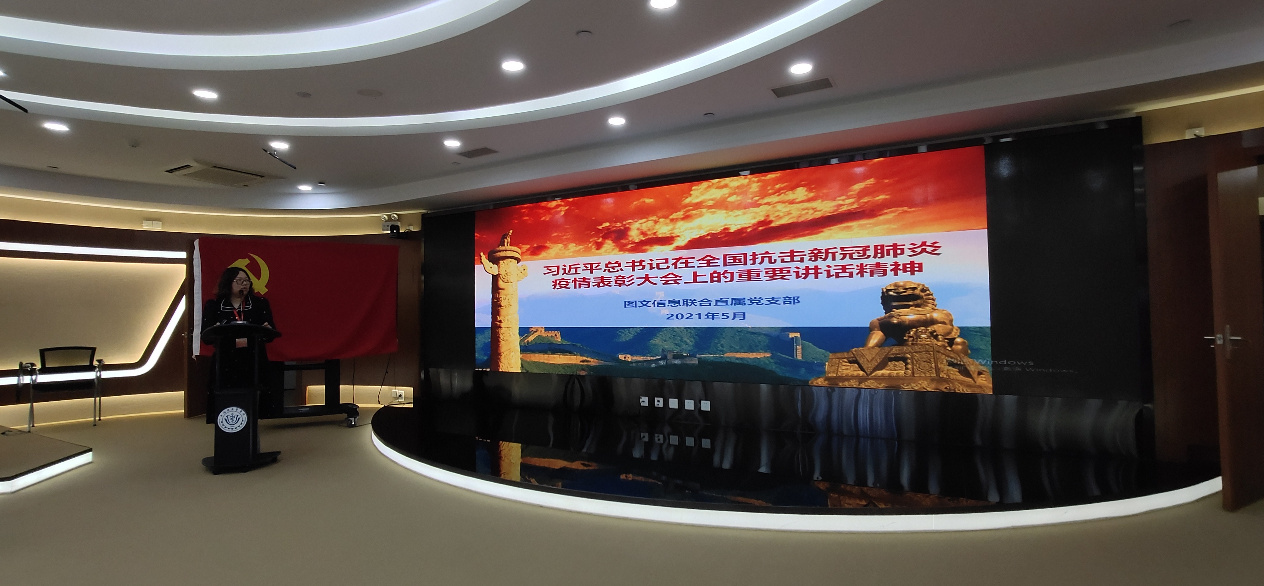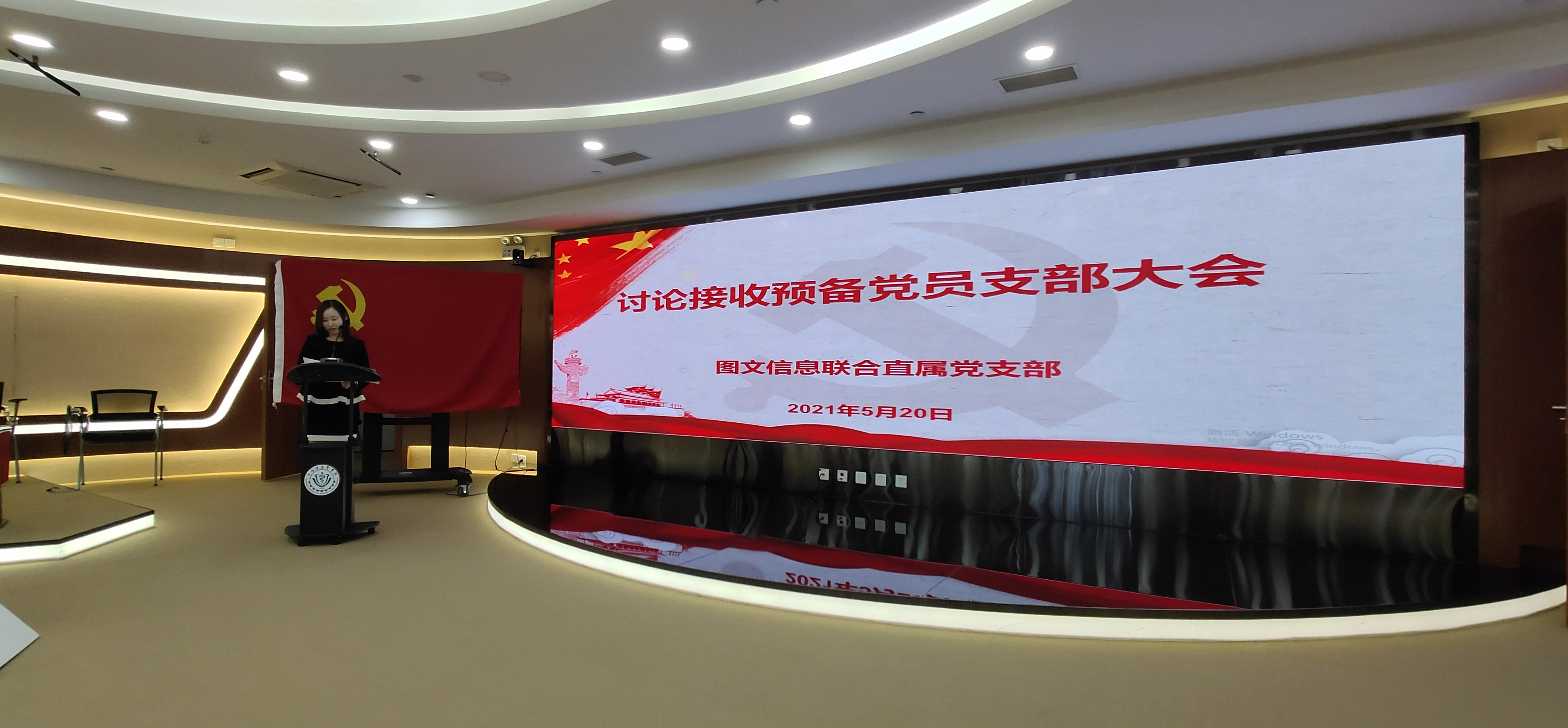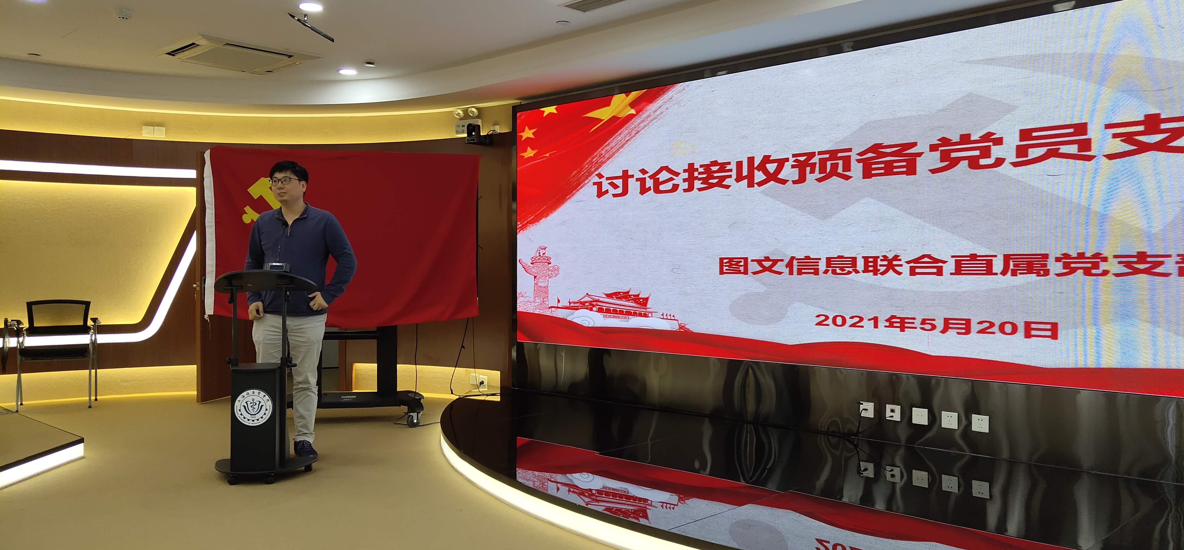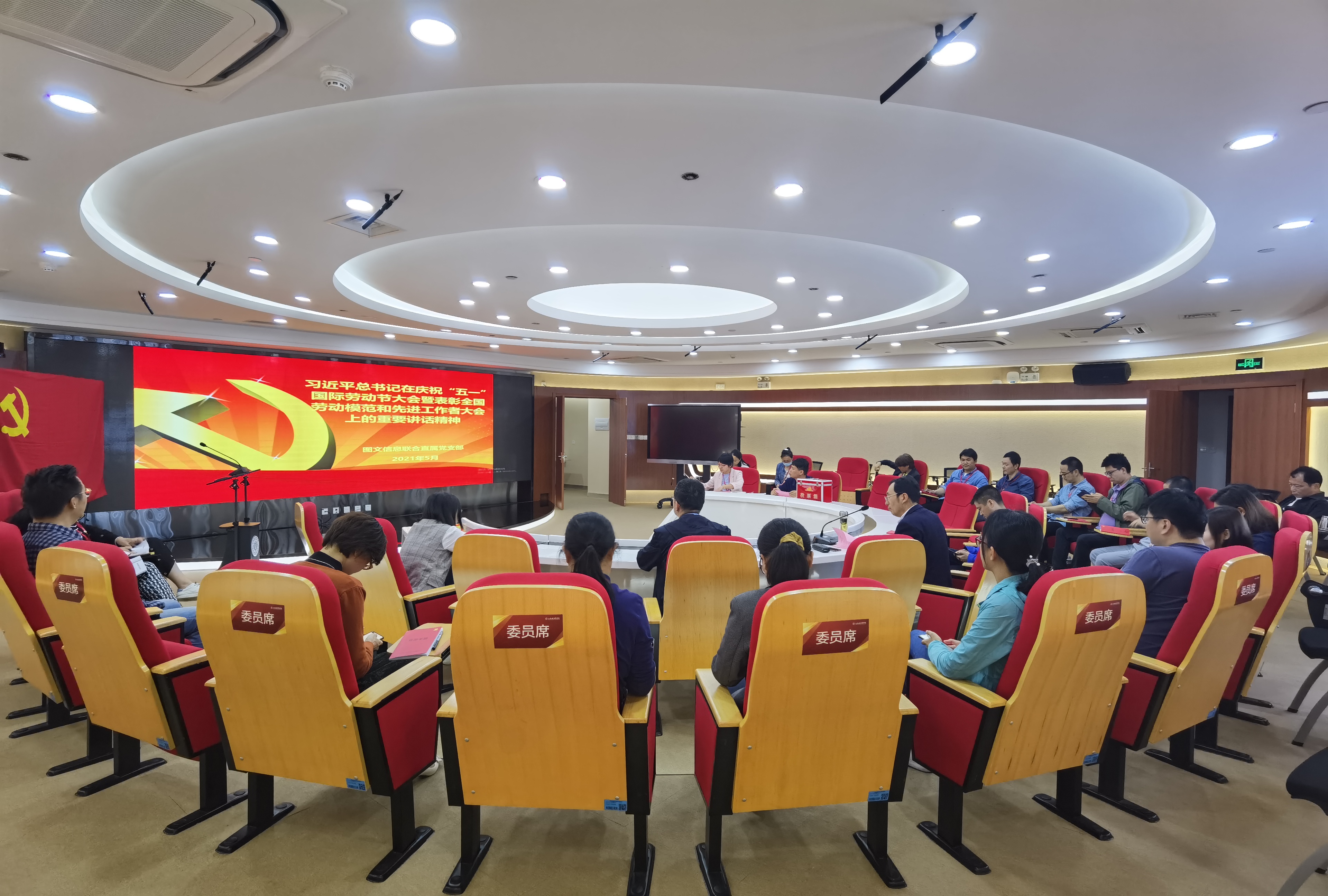 5月20日下午13:00图文信息联合直属党支部在南苑三号楼五楼图书馆报告厅召开党史学习会暨发展党员大会。会议由支部书记王云光书记主持,支部全体党员、发展对象、入党积极分子共27人与会。