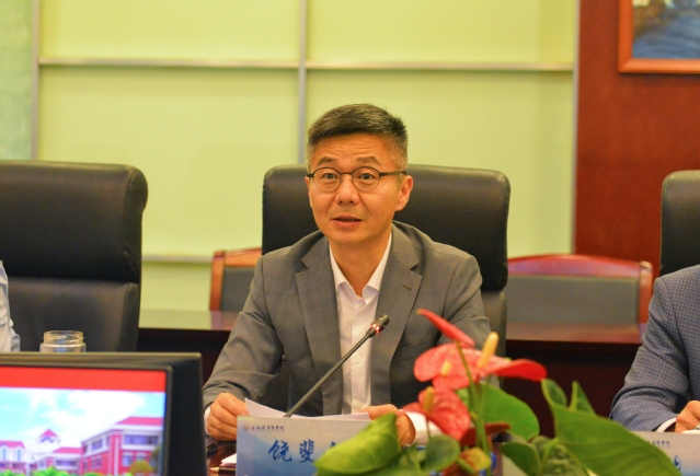 吴韬代表学校对张明书记一行来访表示热烈欢迎,他重点围绕立德树人、教育教学、学科建设、附属医疗机构建设、校企合作等方面向来访嘉宾做了详细介绍。吴校长表示,学校应用型、特色性、国际化的办学定位与青浦区“五大新城”发展需求高度契合,希望双方加强合作,共同服务于健康中国、健康上海、健康青浦。