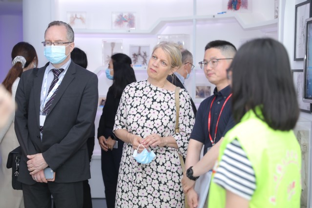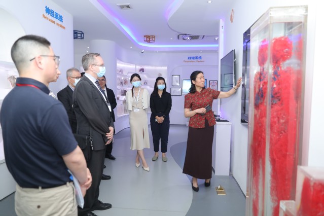 Mari-Anna Suurmunne参赞一行首先参观了我校现代护理实训中心,基础医学院互动实训中心等教学实践基地,与我校师生交流,适时提问,听取我校事业发展情况,尤其对我校国际合作与开展、中芬师生交流项目中体现的专业水准表示高度认同。