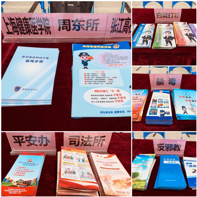 为深入推进禁毒、反邪教、扫黄打非、防电信诈骗宣传工作的全面开展,营造文明、平安、健康的校园环境,6月8日中午,学校联合周浦镇平安建设办、周东派出所、张江高校派出所在北苑开展“平安校园人人参与,禁毒反邪警钟长鸣”为主题的专项宣传活动。