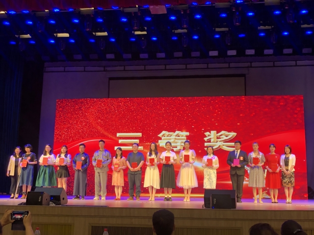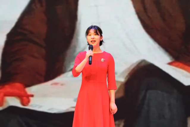 备战决赛期间,正值紧张的期末考试周,为了避免影响学生学习和考试,图书馆阅读与推广服务部对选手进行了两次集训。第一次集训从作品内容、参赛服装和舞台背景与音乐等方面进行全方面的指导;第二次集训则针对《人民万岁》作品,从断句、音量、感情等诵读技巧方面进行逐字逐句的调整与训练。通过两次集中训练,选手从诵读水平、舞台状态和舞台背景等方面均得到了提升,最终在决赛中荣获三等奖。
